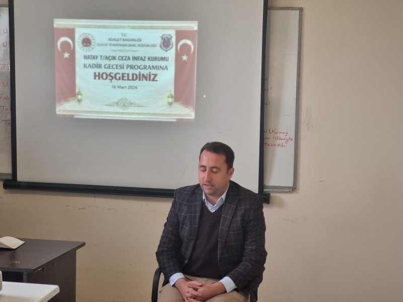 16 Mart 2026 tarihinde Hatay T/Açık Ceza İnfaz Kurumumuzda Manevi Rehberlik Birimi tarafından “Kadir Gecesi ve Önemi” temalı program gerçekleştirildi.